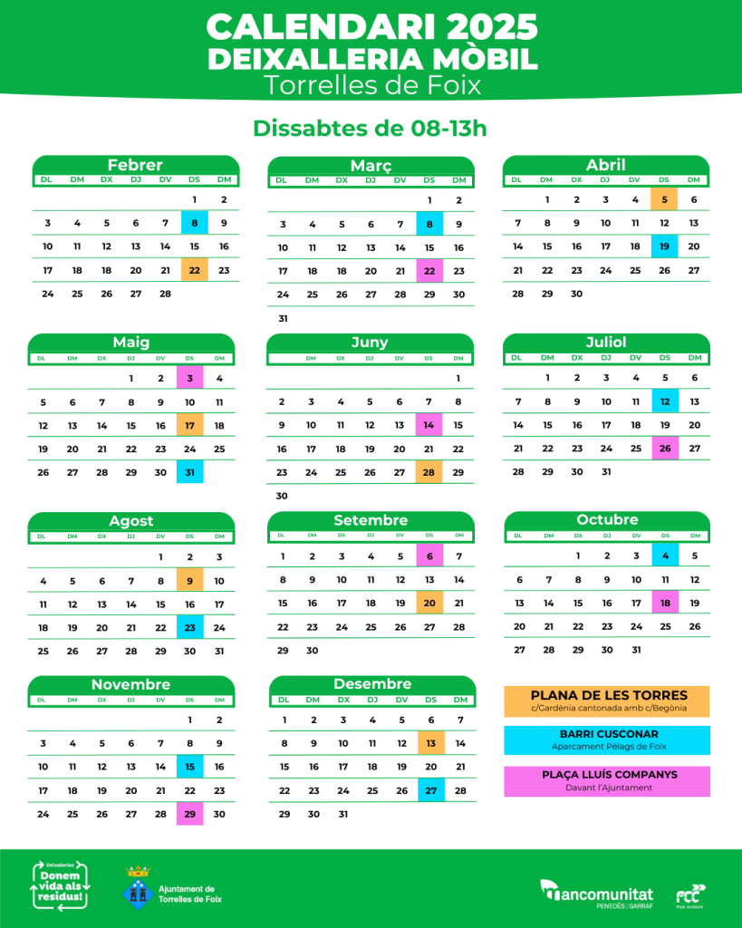 La tarjeta para acceder a la Deixalleria «Els Tres Termes» se puede recoger en las oficinas del Ayuntamiento de Torrelles de Foix, en el horario de atención.